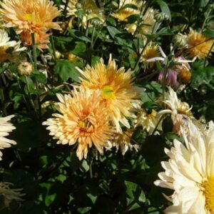 A côté des chrysanthèmes nanifiés et forcés pour une floraison fin Octobre, d’anciennes variétés, florifères, parfaitement rustiques, ont du mal à exister. C’est bien dommage car la variété des couleurs, leur bonne tenue en fleur coupée et leur durée de floraison font merveille.